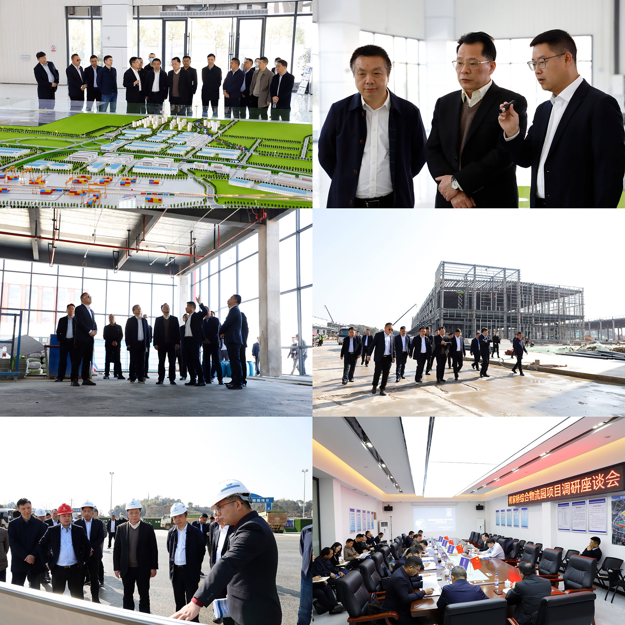 李建華一行首先來到展銷中心的沙盤前聽取項目整體情況介紹,隨后現(xiàn)場察看城配中心項目和PPP項目的建設情況,最后來到胥家橋綜合物流園協(xié)調指揮部會議室召開調研座談會,進一步了解項目建設和招商運營情況。