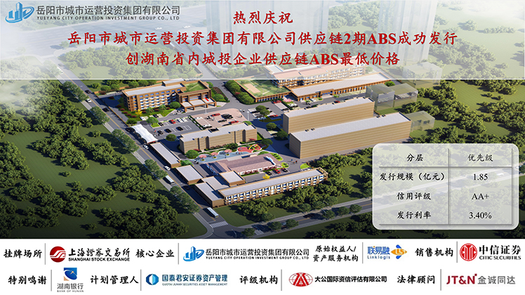 2023年12月8日,由岳陽市城市運營投資集團有限公司作為核心企業(yè)的供應(yīng)鏈ABS第2期在上交所成功發(fā)行。