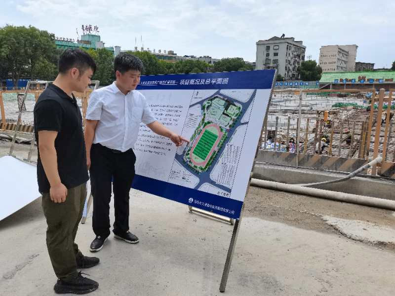 工人文化宮及東風(fēng)廣場改擴建項目負(fù)責(zé)人宋維(右)講解施工方案