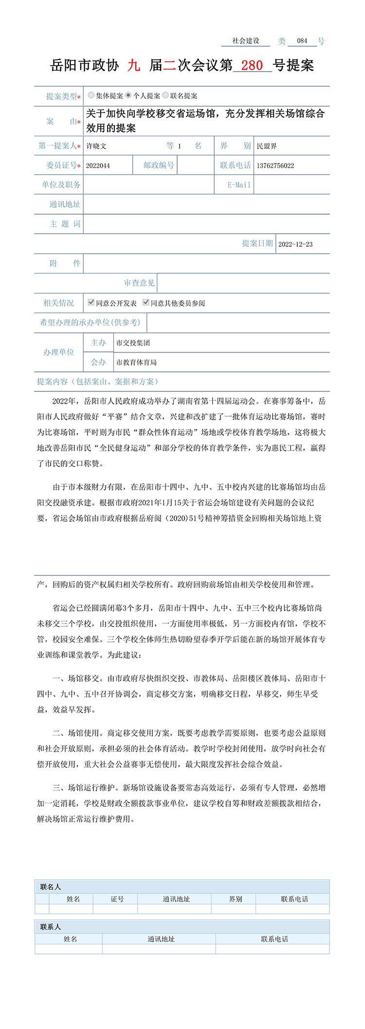 對于岳陽市政協(xié)九屆二次會議第280號提案的回復