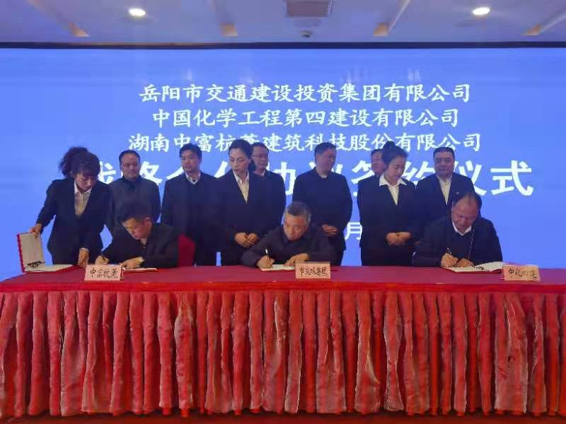 3月5日上午,岳陽市交通建設投資集團有限公司與中國化學工程第四建設有限公司、湖南中富杭蕭建筑科技股份有限公司舉行戰(zhàn)略合作協(xié)議簽約儀式。市政協(xié)副主席秧勵,經(jīng)開區(qū)黨工委副書記、管委會主任謝春生出席并見證簽約。簽約儀式由市政府副秘書長劉衡岳主持。
