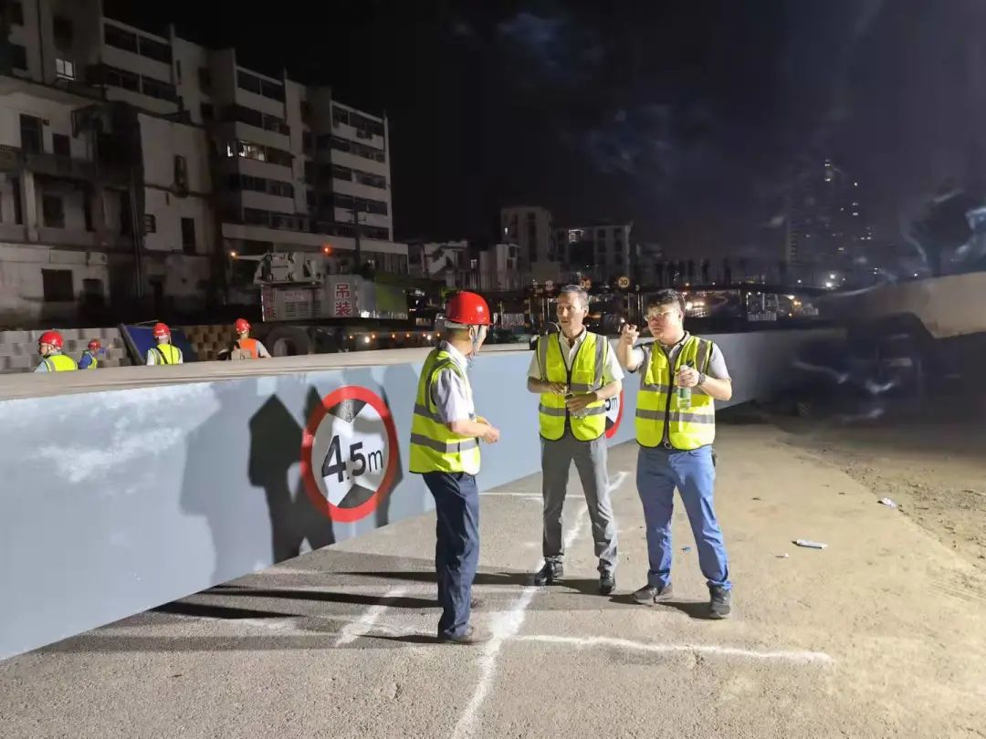 市交投集團黨委委員、副總經理易朝暉現(xiàn)場調度,市質監(jiān)站主要負責人現(xiàn)場指導,市交警支隊疏導交通,相關施工監(jiān)理設計等單位主要負責人也全程參與。