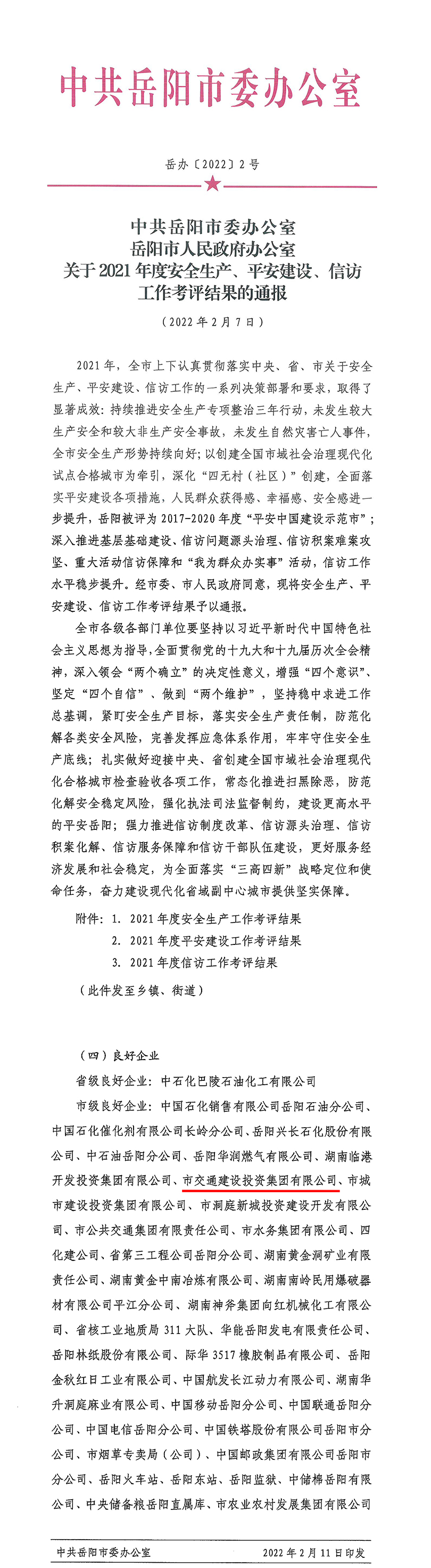 關(guān)于2021年度安全生產(chǎn)、平安建設(shè)、信訪工作考評(píng)結(jié)果的通報(bào)
