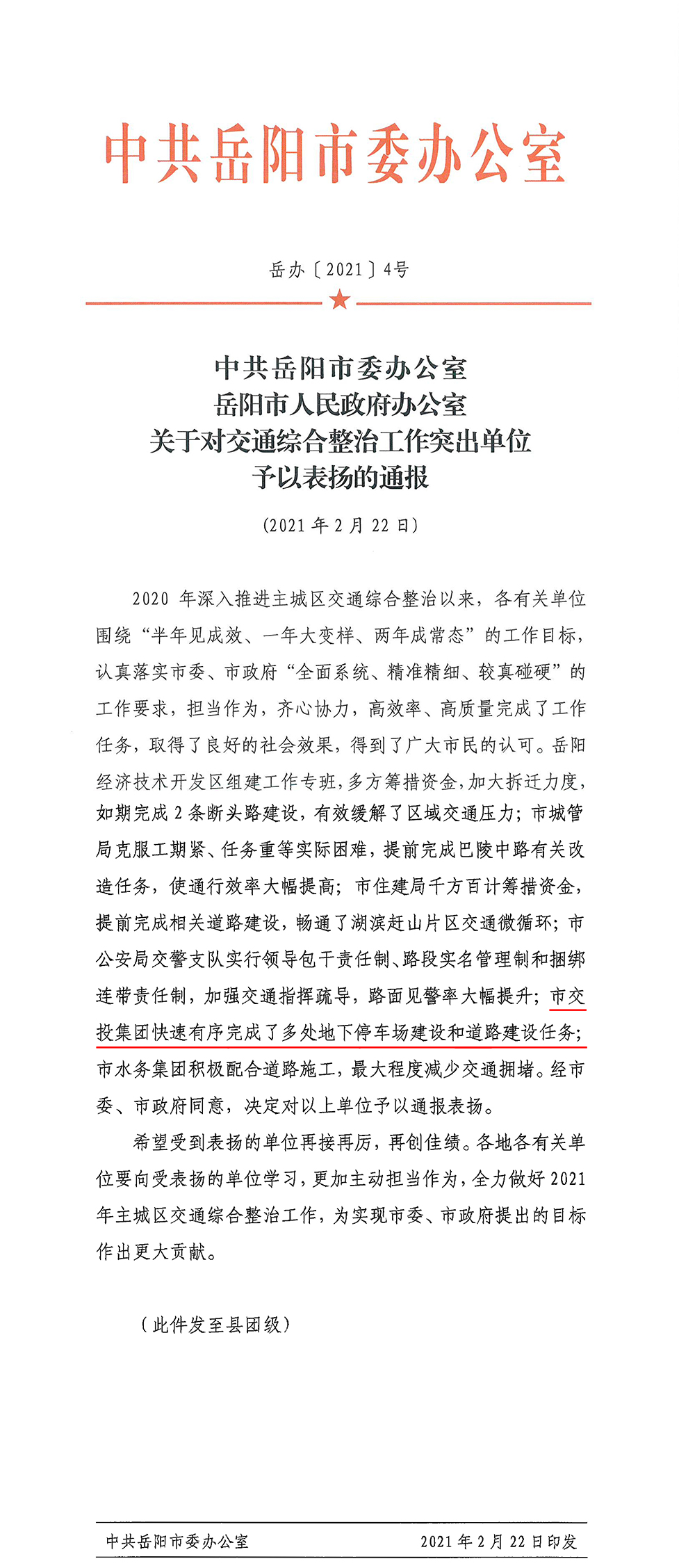 關(guān)于對交通綜合整治工作突出單位予以表揚(yáng)的通報(bào)