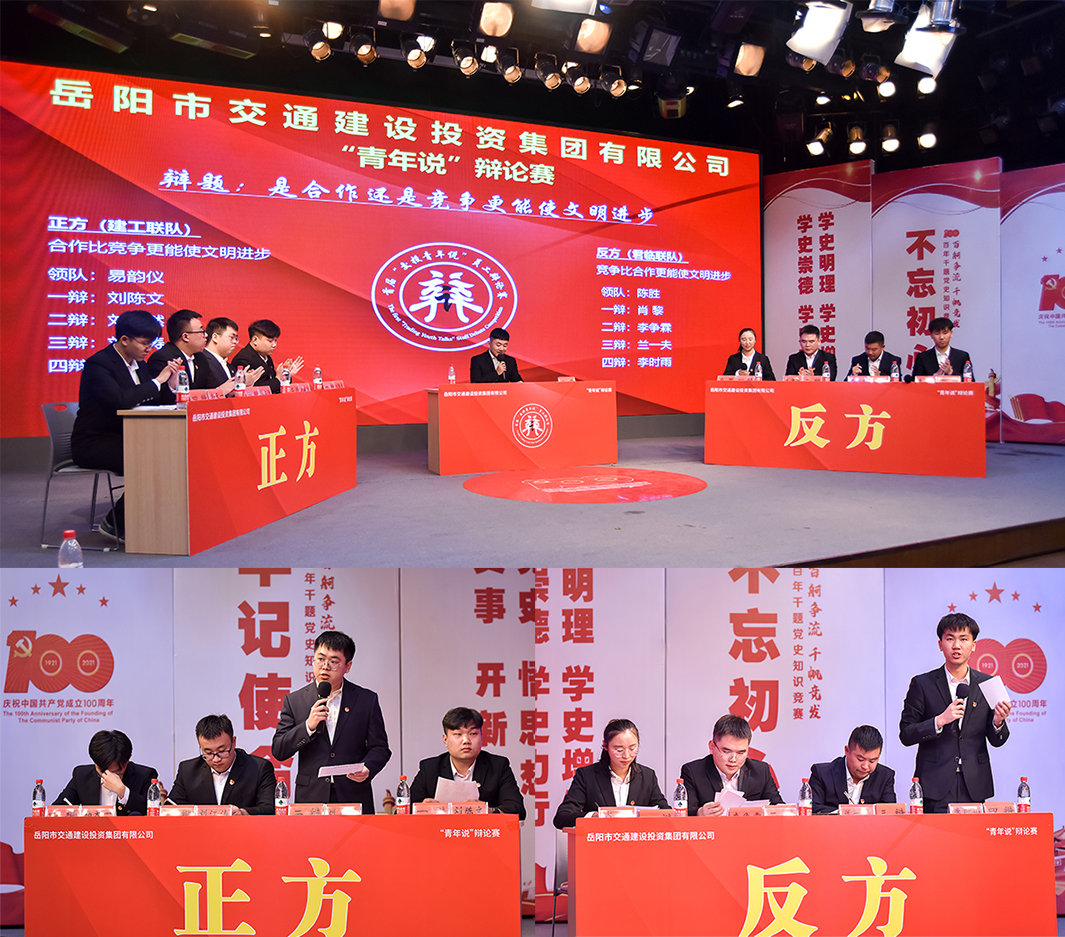 首屆“交投青年說(shuō)”辯論賽,歷時(shí)一個(gè)月,8支隊(duì)伍,90余名團(tuán)員,經(jīng)過(guò)8場(chǎng)比賽的角逐,于2021年11月11日晚圓滿落下帷幕。團(tuán)市委書(shū)記綦小廣、湖南理工學(xué)院工會(huì)副主席劉志軍、市交投集團(tuán)黨委委員、紀(jì)委書(shū)記黎繼華、黨委委員、副總經(jīng)理柴石球、教文公司總經(jīng)理陳仁和、市交投集團(tuán)總經(jīng)理助理朱清出席。