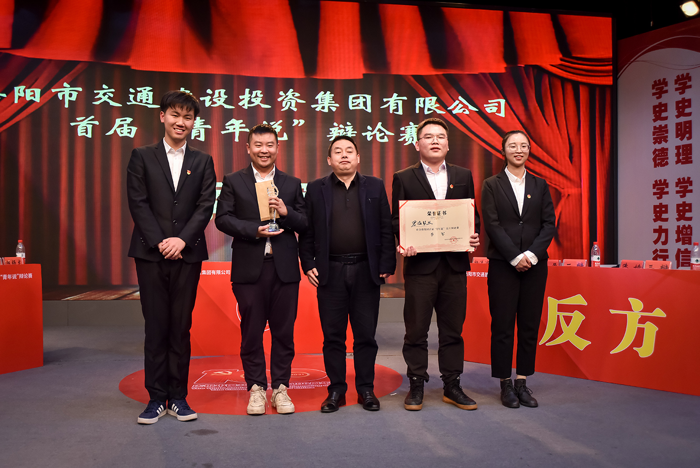 綜合兩場(chǎng)對(duì)決,最終君臨聯(lián)隊(duì)肖黎與集團(tuán)聯(lián)隊(duì)楊漾浪表現(xiàn)出色、思維敏捷、反應(yīng)迅速,得到了評(píng)委的一致好評(píng),獲得全場(chǎng)最佳辯手的稱(chēng)號(hào);君臨聯(lián)隊(duì)獲得季軍;建工集團(tuán)獲得優(yōu)勝獎(jiǎng);集團(tuán)聯(lián)隊(duì)獲得亞軍;教文聯(lián)隊(duì)獲得冠軍。